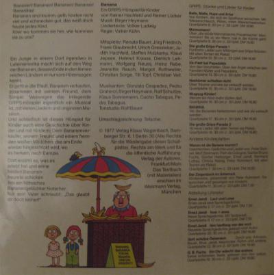 Er geht in die Stadt, Bananen verkaufen, zusammen mit seinem Freund, dem Sänger. Weswegen das inliegende GRIPS-Hörspiel eigentlich ein Musical ist, mit vielen Liedern und originalen Musiken.