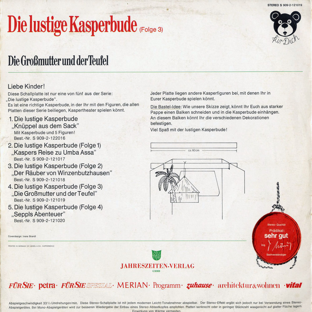 Auf dem schwarzen Vinyl der Platte findet sich die Jahresangabe 1973. Ein Jahr später erschien die Platte erneut bei "für Dich", der Titel lautete jetzt: Kasper und der Teufel. Am Inhalt wurde nichts verändert, nur des Titelbild erneuert. Der Kasper von einst erscheint im Comicgewand. Es gab auch eine MC-Ausgabe dieser Reihe, diese hatte ebenso den moderneren Kasper auf dem Titelbild.