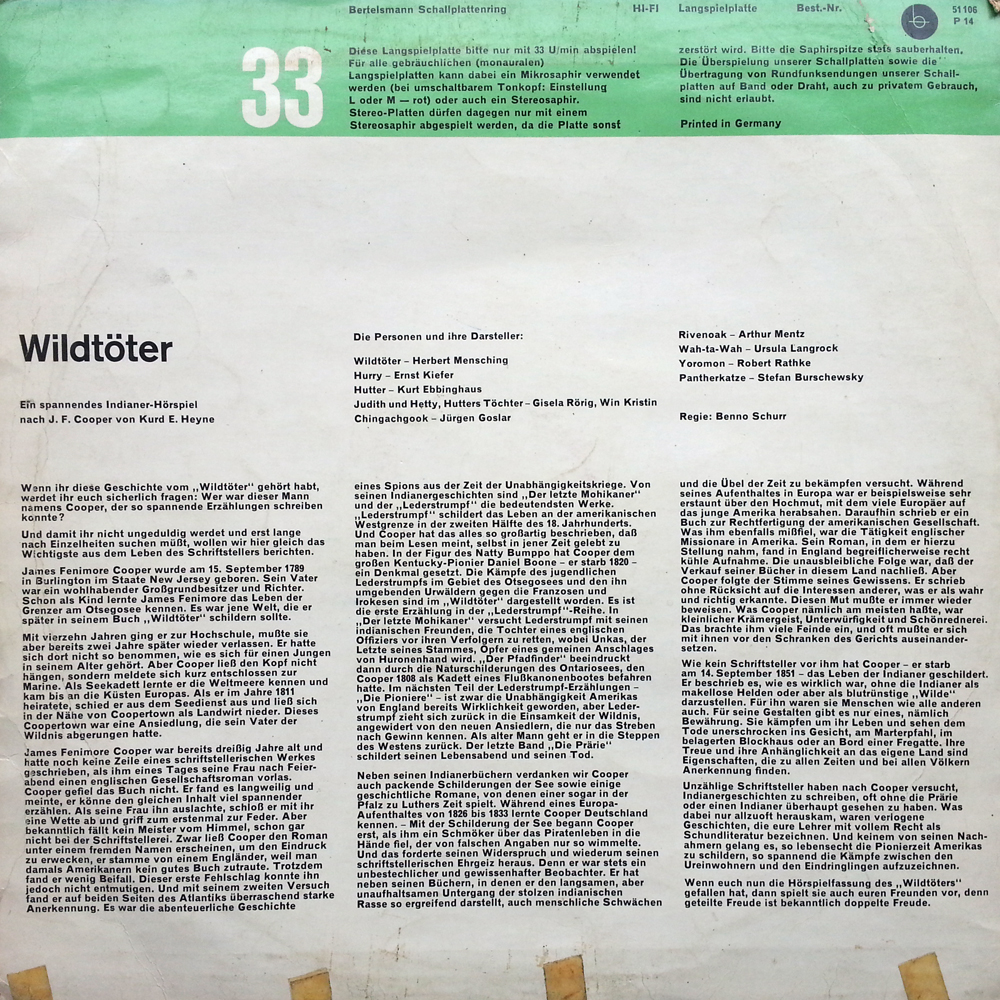Nach dem Roman von James Fenimore Cooper