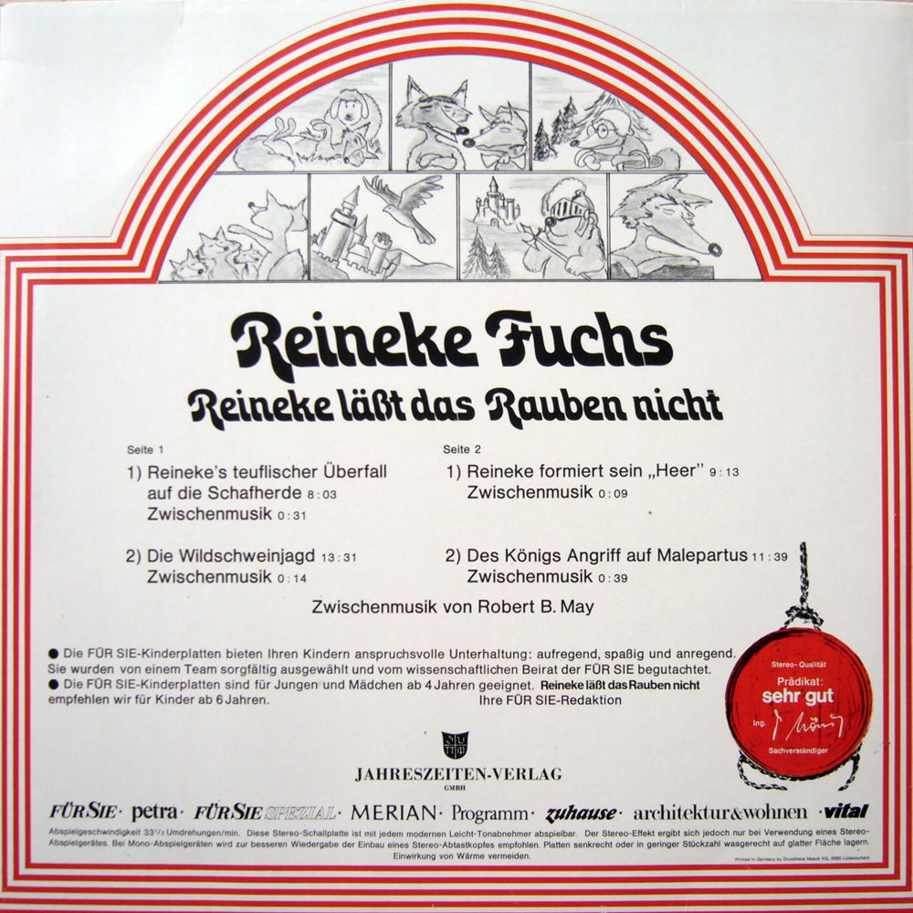 Seite 1: Reineke´s teuflischer Überfall auf die Schafherde Zwischenmusik Die Wildschweinjagd Zwischenmusik Seite 2: Reineke formiert sein "Heer" Zwischenmusik Des Königs Angriff auf Malepartus Zwischenmusik