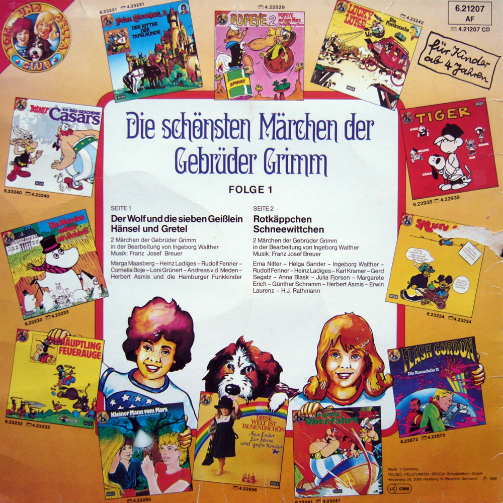 enthält die Märchen: Der Wolf und die sieben Geißlein – Hänsel und Gretel – Rotkäppchen – Schneewittchen
