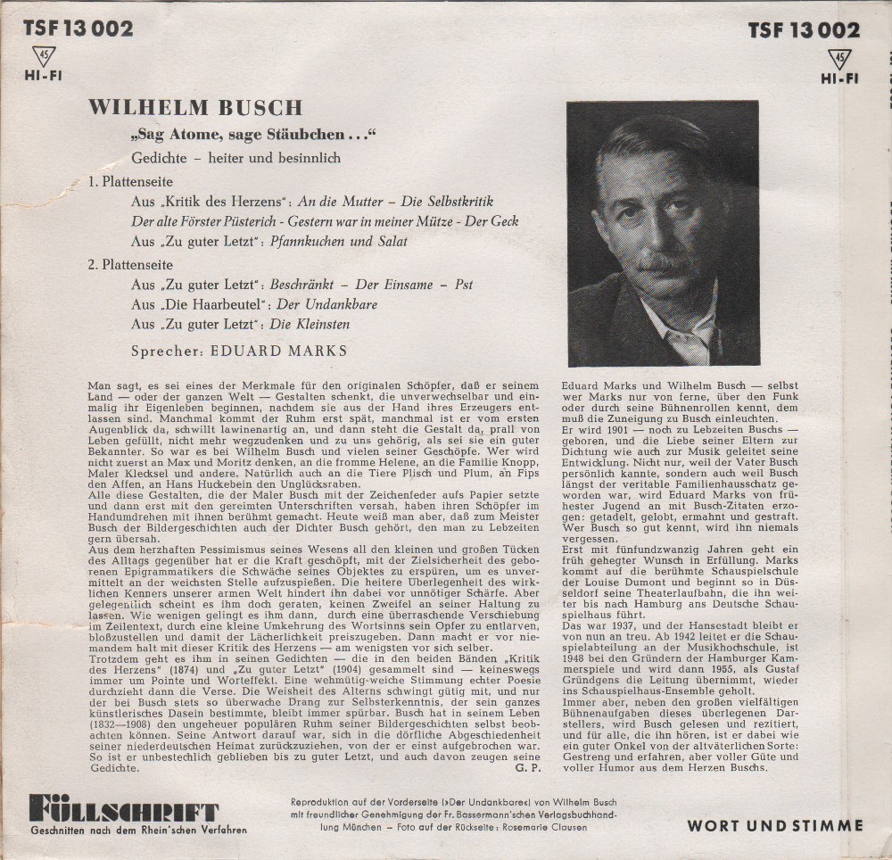 WILHELM BUSCH "Sag Atome, sage Stäubchen ..."