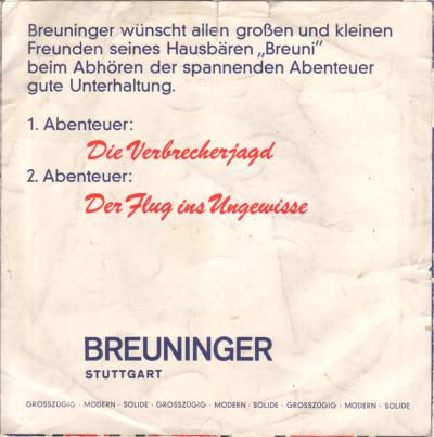 Die erste von insgesamt 8 Werbesingles mit Hörspielen, deren Hauptakteur Breuni, das Maskottchen des Möbelhauses Breuninger ist.